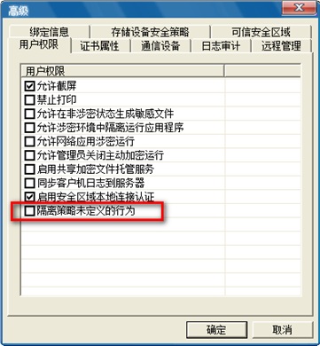注:请优先使用服务的进程名称,比如Windows自带的FTP服务,进程名是 inetinfo.exe;用通配符 * 设置虽然简单,可以匹配所有进程,但在某些复杂情况下有可能引起策略冲突。 ② FTP服务器上的数据要求加密 Ⅰ 用户权限里面“隔离策略未定义的行为”没勾选