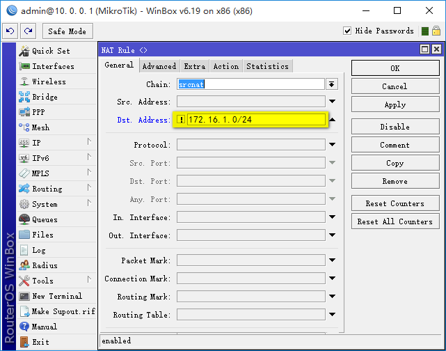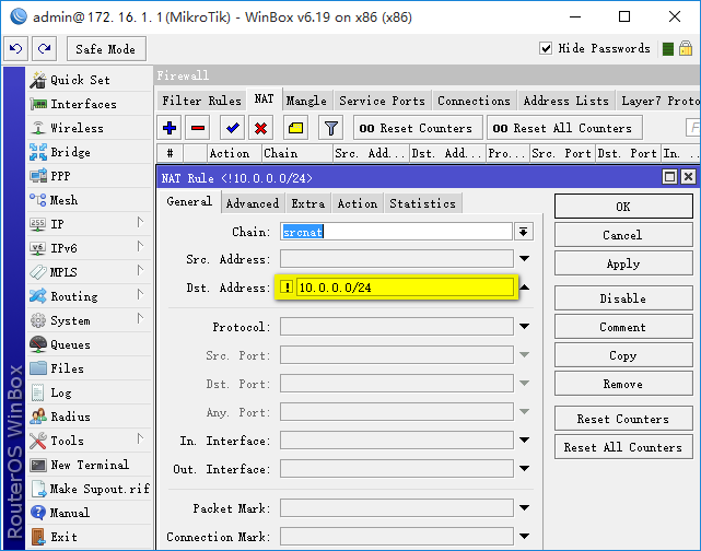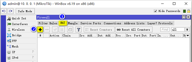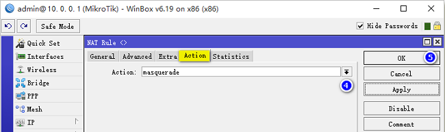 General->Chain设置为srcnat,Action设置为masquerade,这条NAT规则添加后,就能访问外网了。 二、 路由器B接入路由器A 1. 路由器A架设PPPoE服务器 1) 创建地址池