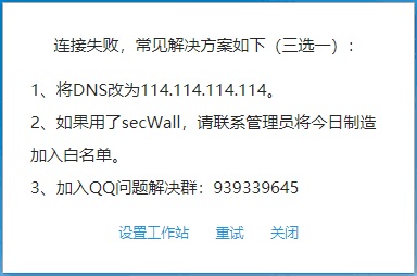 在secWall加密环境中,默认状态下涉密应用的网络通讯受限,打开今日制造(迈迪宝)软件出现“连接失败”的情况,如下图如未 。本文档通过设置正确的安全策略使今日制造能够在涉密环境中正常访问云端服务。