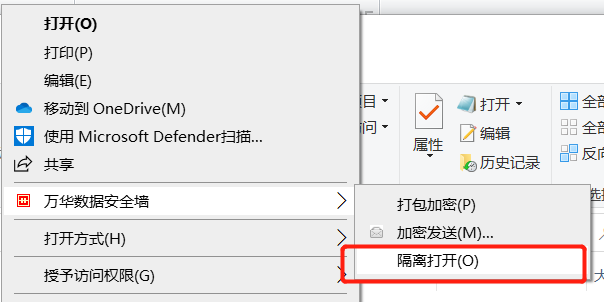 隔离打开有以下特征: 1) 只有不加密的文档或应用程序(包括应用程序的快捷方式)可以隔离打开; 2) 隔离打开功能需要管理员在用户权限里开通;