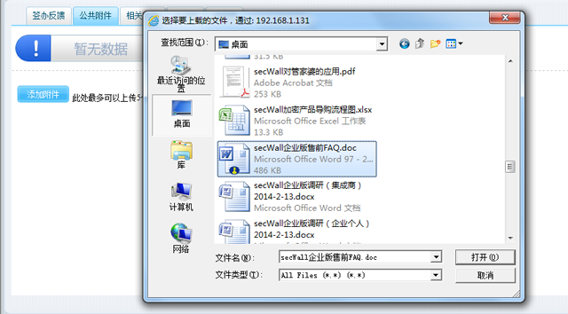 5. 在公共附件区,将需要解密的文件作为附件上传。