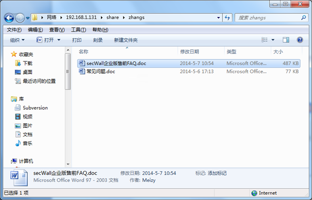 8. 因为共享文件夹已经设置为文件系统安全区域,所以保存到共享文件夹的文件会自动解密。