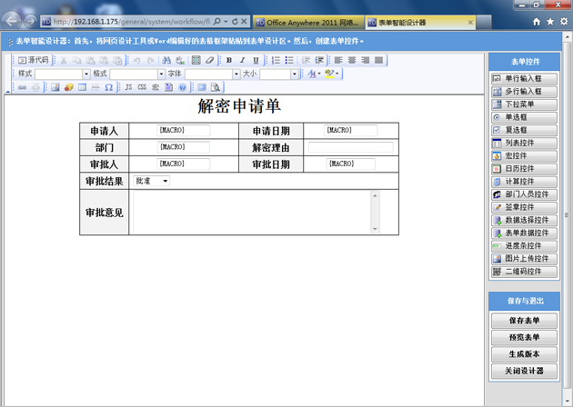 3. 接下来就可以新建解密申请的需要表单,流程等。