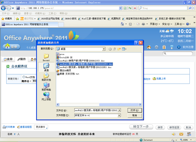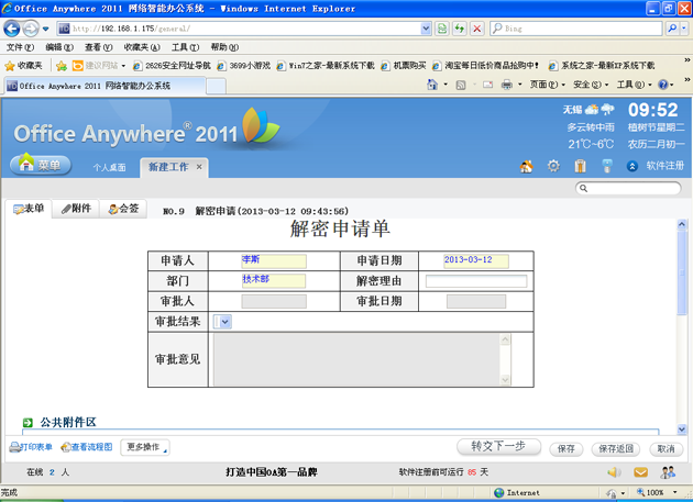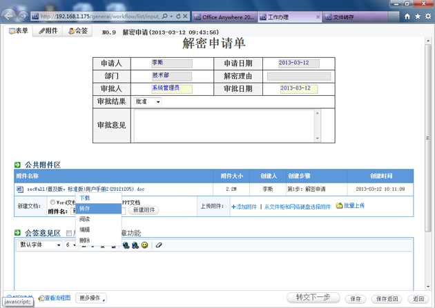 6. 管理员收到普通用户的申请后,如果同意解密该文件,就将附件转存到该用户的网络硬盘里。