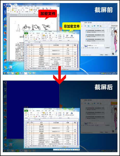 由以上测试可见,secWall反截屏功能并不是简单的阻止用户截屏,首先反截屏不针对非机密数据,其次,即使是机密数据截屏,只要被截屏的内容仍然在企业允许的流通范围内,截屏也不会受到影响。如果企图把机密数据截屏发送到企业之外,这样的截屏是不允许的。可见现在防泄密系统的反截屏技术已经能够十分精准地控制被截屏的内容。