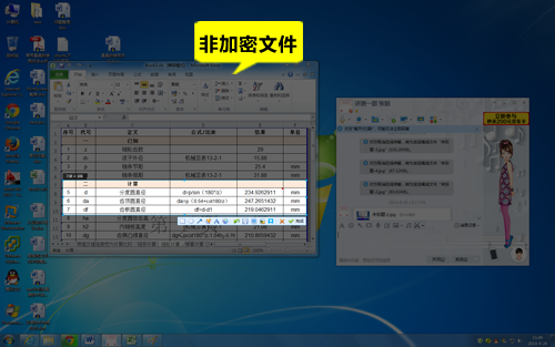 将截屏直接黏贴到QQ聊天框中试图往外发送,会发现无法黏贴。 非机密数据 以上测试说明secWall的反截屏功能可以阻止用户用系统截屏键PrintScreen截屏将机密数据外泄。但如果想要截屏的不是机密数据呢?如果PrintScreen截的图都不能外发,也会对企业办公造成一定的麻烦。以下就用非机密数据来测试一下。 打开非加密文件“Book1.xls”,按Alt+PrintScreen键截屏。