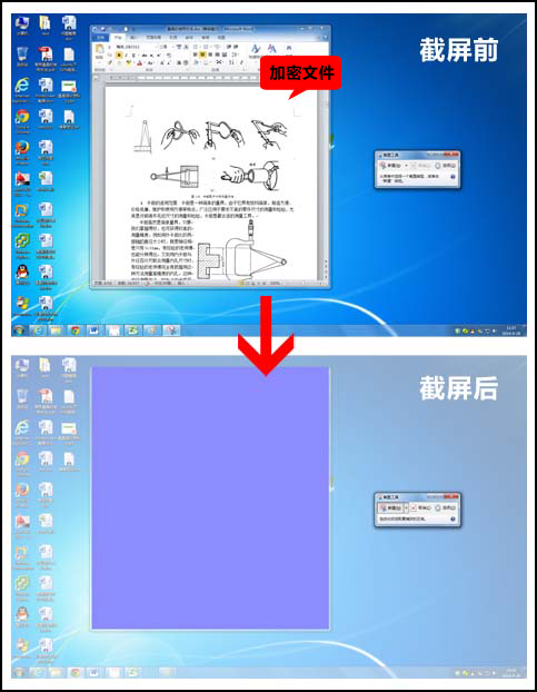 如果桌面上没有涉密的数据打开着,启用QQ截屏不会感觉到反截屏的存在。