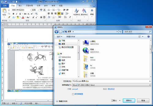 将截屏黏贴到新文档中,保存为“PrintScreen截屏.doc”文件。