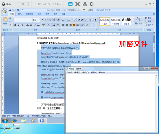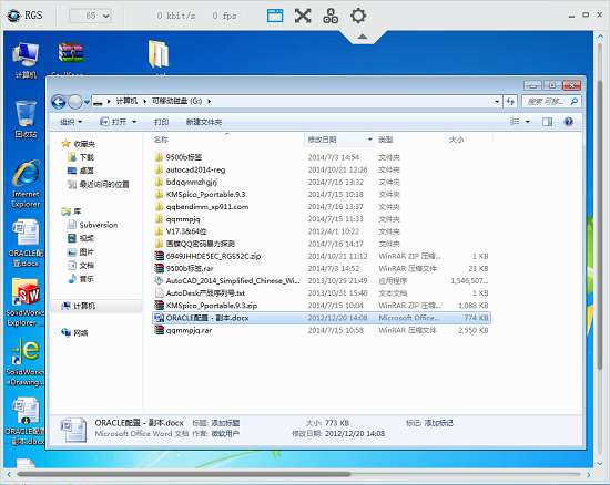 和secWall的结合应用由于RGS对远程USB和黏贴版的控制非常人性化,但让使用者操作便利的同时也带来了泄密的问题。使用者可以非常容易的将Sender端的机密数据通过USB移动存储设备或者黏贴版拷贝带走。 在Sender端安装secWall客户端就可以解决这个问题。 secWall客户端安装好之后,将需要保密的数据加密。由下图可以看到,即使将加密数据拷贝到映射到Sender端的U盘中,文件依然还是保持加密状态。加密的文件只能在secWall环境下查看编辑。