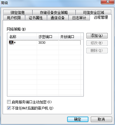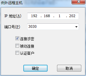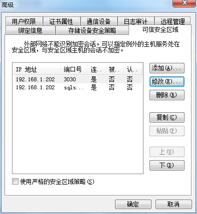 在可信安全区域中点击“添加”按钮,输入PDM服务器的IP地址以及端口号3030,勾选“涉密连接”选项后,点击“确定”按钮。
