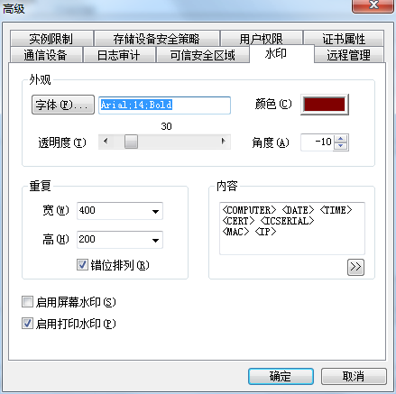 一、概述 在集控用户管理器用户设置的高级选项中,可以对水印进行自定义设置。 secWall的水印分为屏幕水印和打印水印两种。两种水印都可以单独设置开启或关闭。