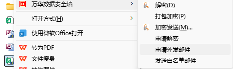 三、 外发邮件申请/审批流程 为加强企业敏感信息外发的安全管控,SWTrans提供了标准化的外发邮件申请与审批流程,在保障业务高效流转的同时,实现对外部邮件发送行为的全过程可管、可控、可审计。 1. 申请阶段 当员工因工作需要向外部邮箱(如客户、合作伙伴等)发送包含敏感内容的邮件时,需通过右键菜单发起“申请外发邮件”。系统自动识别外发行为,并弹出申请窗口,申请人只需在系统中选择收件人等,填写必要的邮件主题、正文内容,即可提交至审批流程。 注:可发送的外部邮箱,需邮管理员预先在SWTrans系统中设置。 整个申请过程简洁直观,无需切换平台或重复输入内容,最大限度降低对日常办公的影响。