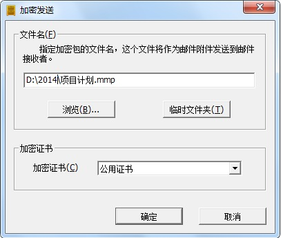 文件打包加密需要选择加密证书,加密证书是存放在secWall硬件Key内的。一般打包加密的证书需要选择与当前用户共享这个加密文件者所共有的加密证书。secWall标准版+的用户可以自己生成“公用证书”,并可将这“公用证书”以文件形式导出。用户可以将这导出的“公用证书”提前递交给对方, 对方将“公用证书”导入他自己的secWall 硬件Key内。