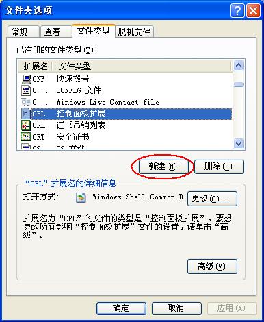 客户计算机上“secWall系统设定”打不开是由于该机CPL文件系统已损坏。 解决步骤: 1、打开资源管理器。 2、菜单栏中选择“工具”。 3、选择“文件夹选项”。 4、选择“文件类型”。 5、查找扩展名CPL。 6、如没有扩展名CPL文件,按“新建”按钮。(图1)