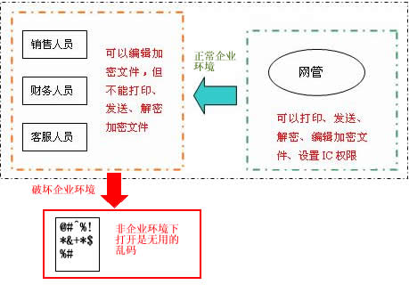 公司性质:中小型咨询公司(10台客户端) 所处环境:Windows XP 常用软件:office等常用办公软件 客户需求:防止员工将保密资料(由office生成)泄露;即使出差在外或把电脑带回家,加密资料也不能被拷贝出去 所用版本:secWall 中小企业版 解决方案:1、采用secWall 中小企业版IC的使用权限不同,普通用户不能解密、拷贝、发送、打印加密文件。 具体实施: secWall 中小企业版对IC权限的控制,普通员工是不能把加密资料解密成明文状态。所以当机密资料成加密状态时,普通员工复制涉密数据的全部或部分都会导致整个结果数据变成涉密数据。而涉密数据一旦离开相应的企业环境,是一堆无用的乱码(图示1)。工作人员在出差时,管理员可以设置IC的使用有效期。在一定的时间段中,工作人员由于工作需要要使用加密文件,过了效有时间,IC变为无效IC,不能正常解读加密资料(图示2)。