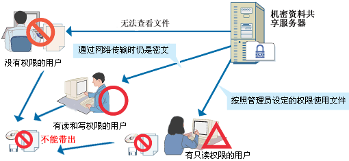 “加密无法共享、共享难以保密”,保密与共享一直都好象是矛盾的对立面。secWall 保密系统一举打破了这种尴尬局面。基于实时加解密技术对网络文件系统突破性的支持,secWall 保密系统在保密的同时可以共享,共享的加密数据在网络传输时保持密文状态,只有拥有同样存取权限的人才能使用这些加密的共享数据。